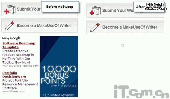 另外,Firefox, Safari, IE等浏览器的用户也可以按照其说明进行使用AdSweep。在使用成功后,再次进入其主页,会在右上角显示如图片所示出已经激活AdSweep的信息。使用后能够有效隐藏一些Google等图片广告,而对于文字广告效果不好。