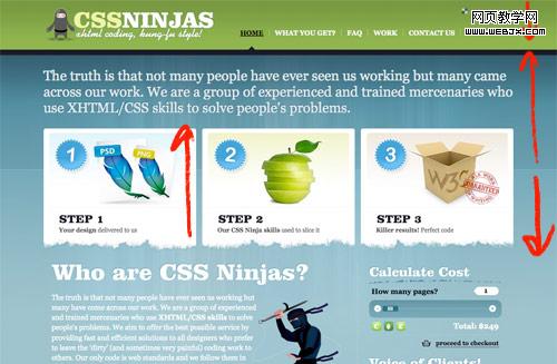 CSS Ninjas 给人的第一眼印象是单调的颜色,但细看之下每种颜色都有着细微的渐变,使其变得具有质感。
