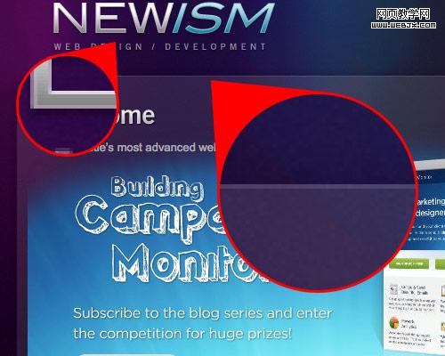 Icon Dock 以及 Newism 两者都运用一个半透明白色线条以给页面元素的顶端边缘添加一个高光。几乎难以察觉的效果却让设计十分出彩。