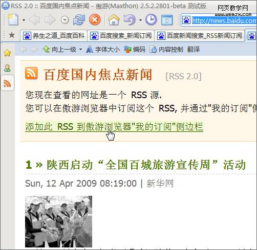 而在直接打开订阅地址后,也会自动弹出是否将其添加到傲游浏览器RSS订阅器中,根据需要可以快速完成添加。