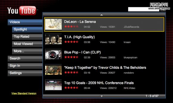 今天YouTube开放了专门为电视机观看视频而设计的新版本,称做YouTube XL,界面和字体都为你家里的大屏幕电视机而优化。随着HTPC的流行,越来越多的人们将电脑连接到大屏幕电视机,或是用Wii、PS3这些内置浏览器的游戏机来观看视频(XBOX360是怕三红所以没有内置会耗费时间的浏览器吗?)。YouTube默认的界面和小文字看起来很蹩脚,YouTube XL应运而生。你不仅可以搜索视频观看,也可以登陆自己的账号,查看评论,查看收藏等等,基本跟普通版YouTube的功能一样。