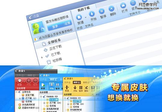 经过重新设计的界面,看起来像是之前露底的迅雷6和迅雷5的杂交版,好吧我承认这样的设计让广告看起来不再像之前那么刺眼,但是仅仅这样是不能够被称作一个具有重要意义的版本。迅雷似乎是想要藉由这次的版本开始着重推广迅雷会员,看起来是和QQ会员差不多的东西是吧。打开迅雷会员的首页(http://vip.xunlei.com)你会发现整个页面似乎就是复制的QQ会员(http://vip.qq.com),尽管看起来还有那么地一点点生涩。