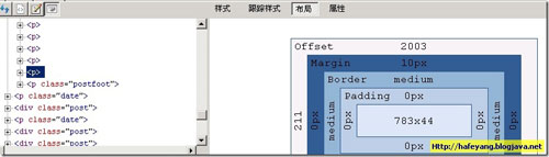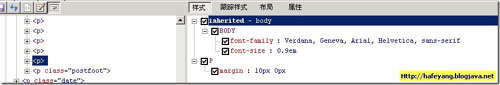 在探测了一个DOM节点之后,工具对样式的支持堪比Firebug,同样可以查看currentStyle,跟踪样式: