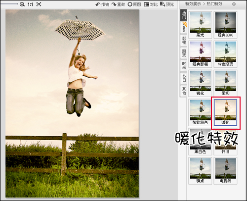2.试了很多次,貌似使用“暖化”效果是最好的~别看现在这颜色不是很好看,但这只是基础,这样打乱了自然颜色,可以让颜色的转变更加的随心如意,想要Feel那可就变简单了。