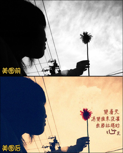 一张黑白图片经过美图秀秀简单的处理,就能变成非比寻常的复古非主流效果。看看效果的对比吧: