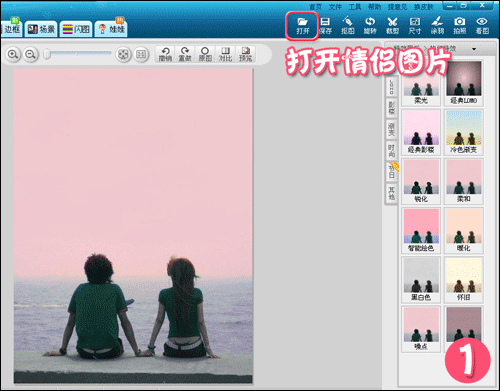1. 打开一张情侣照片,适当调整照片色调让照片颜色显得更鲜艳亮丽。
