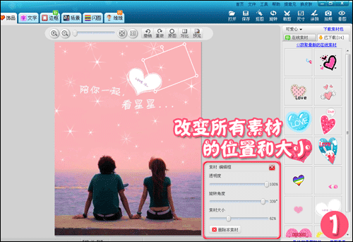 3. 在照片中写手想说的话和“可爱心”等饰品,然后保存制作好的图片。