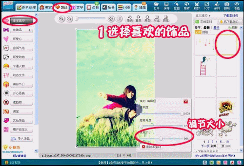 3、然后在“饰品”标签下,在“非主流印”中,选择一些漂亮的素材,添加进去。