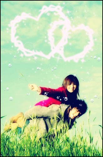 气泡、心形配合如此美好色调的爱情图片,超有非主流的感觉哦,制作很简单,亲们快来看看吧: