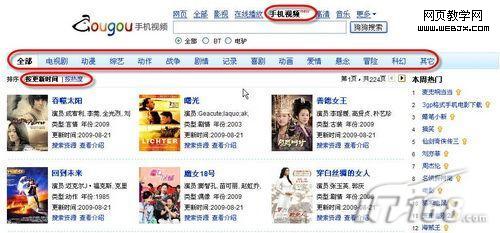 现在很多人的手机都拥有较强的播放能力和较大的存储能力,但是手机中播放的视频格式与电脑上的并不相同,要找到更多的电影装到手机中娱乐还需要费一些周折。当然,迅雷狗狗也为我们提供了手机视频搜索频道,可以很好地满足我们的需要。打开http://www.gougou.com,单击 “手机视频”标签(如图2,也可以直接打开http://shouji.gougou.com/),其下有全部、电视剧、动漫、综艺、动作、战争、剧情、记录、喜剧、动画、爱情、悬念、冒险、科幻、其它等视频类型,也可以按更新时间或按热度来排序,右侧还有“本周热门”排行列表,直接单击就可以搜索、下载。