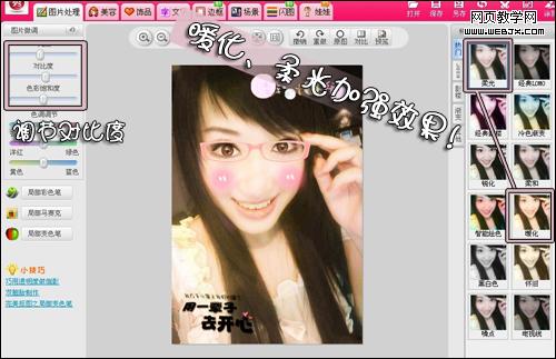 哈哈,最后一步漫画现身啦!把所有的素材鼠标右键合并,使用暖化、柔光效果,调整下对比度就ok啦!