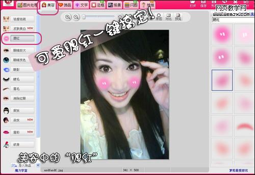 给自己的脸蛋加上漂漂的腮红,好可爱哦!