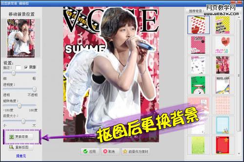 鼠标只要按人物一周抠好,即可完成背景置换,很漂亮吧,不过我要用自己精心准备的背景,哈哈。