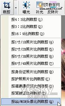 图片处理到这里,如果比较喜欢偷懒的MM就可以直接选择“裁剪-按MSN/QQ头像比例裁剪”,这样一个符合头像大小的照片便一键完成了。