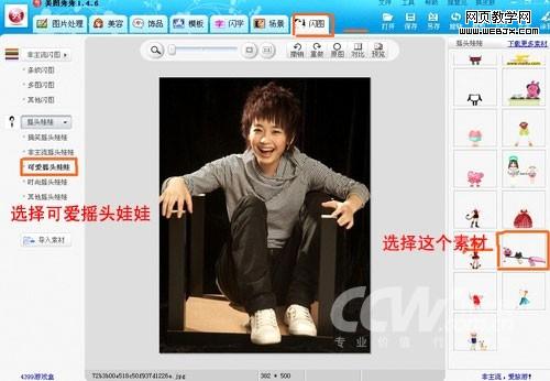 先下载安装美图秀秀(点击进入下载页面),启动软件。一开始我要做个欣宝的摇头娃娃。如图所示:
