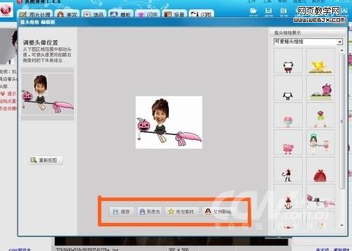 预览效果,途中框中的部分,可以直接保存,也可以直接让你复制到QQ,供给其他人分享,很简单吧?我这里选择“作为素材”,因为一会还要用,不管如何,摇头娃娃部分搞定。