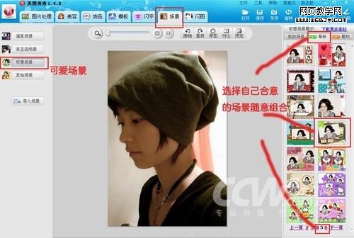 选择左边导航栏的“可爱场景”,会发现图片的右边,有很多的场景可供挑选,我是在“最新”里挑选的一个场景,点一下