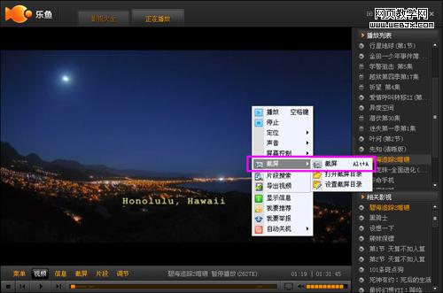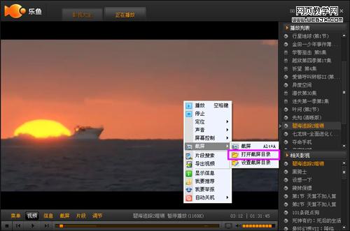 很多网友或出于兴趣,或出于娱乐,又或出于工作,会产生截取节目画面或者图片的需要,于是乎,截屏工具便应运而生了,目前,网友们经常使用的截屏工具应该是qq或者其他专业的软件。不可否认,这些截屏工具在截取静态图片时确实方便快捷,操作简便,但截取动态的画面片段时,却不是最佳的选择,比如有些播放软件不支持这些截屏工具,那么网友截取下来的画面就是黑屏状态。为了解决网友这一难题,满足网友的娱乐亦或工作的需要,乐鱼增设了“截屏”功能,乐鱼的截屏功能能够在影片不间断播放的状态下帮助网友获取想要的画面,在该项功能中,网友可以完成截屏、查看截屏、设置截屏文件保存地址三项操作,具体操作步骤如下: