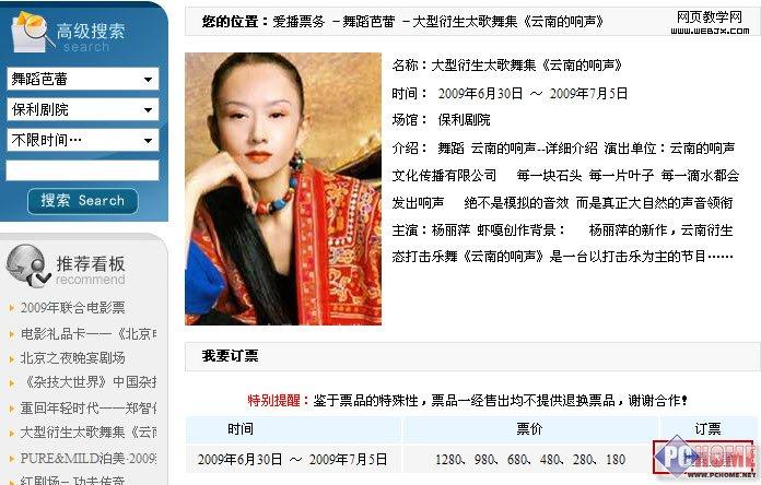 比如我们想欣赏大型衍生太歌舞集《云南的响声》,只要在图02中点击该场表演的缩略图,ABPlayer将调用系统默认浏览器打开对应的订票页面,如图03所示。我们在此可以查看该场表演的时间、地点及相关介绍。如果你确定要订购该门票,只要点击一下页面中的“我要订票”按钮,在弹出的订票对话框中添入姓名、手机号、身份证号等信息即可完成订票过程。