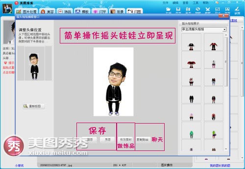 接下来我要把“烧饼帅锅”变成摇头娃娃,只要进入“闪图”标签,找到“摇头娃娃”分类,找个帅帅的造型,用画笔轻松绕头像一周即可。