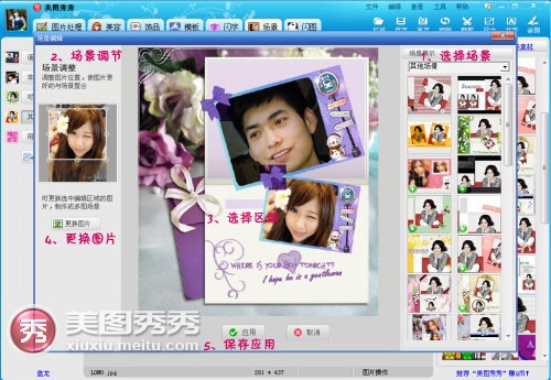 然后进入“场景”标签,美图秀秀最新版支持多图场景,轻松置换N多PL场景哦,和帅锅的亲密完全没有障碍。