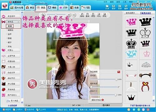 美图秀秀中提供了很多精美的饰品哟,根据自己的喜好随便用吧,千万别客气!