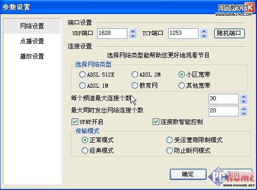 右击播放视频,并执行随后菜单中的“设置”,我们可以对播放参数和网络状态进行更多的调整,包括网络设置、点播设置和播放设置(图3),主要涉及是否开启UPNP、网络传输模式、带宽类型优化、缓存文件管理、是否使用系统播放器等等。