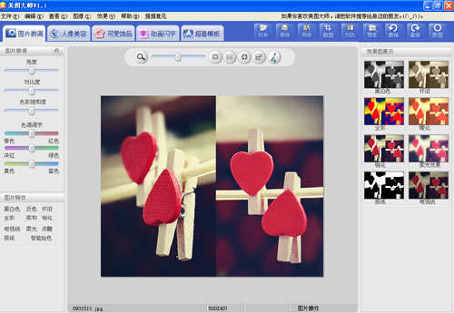 网上找来的美女图片,如果颜色太过鲜亮复杂,或是亮度、对比度不太合适当作论坛签名图,千万不要随意地将它删掉。请注意,“美女签名图”的重点在于“美女”二字,只要MM够养眼,其他的一切问题都是可以解决的。更何况,《美图大师》还在“图片微调”标签页中专门提供了相关的调节选项。建议大家先在这里调好亮度和对比度,然后视需要在“图片特效”功能中选择一种来用就好。