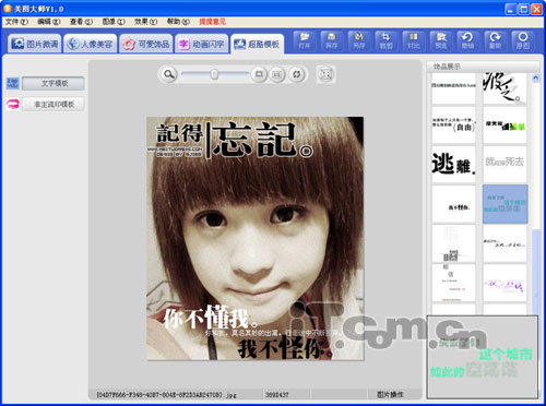 简要说明:这是一款针对非主流图片处理的免费软件。最大的特色就是拥有可爱饰品、动画闪字、超酷模版等其他软件所没有的功能,可随心制作出心想的图片。软件界面如图1所示。