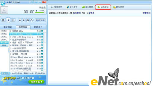 第一步:打开酷狗2008v5.323,在软件界面上方点击 “动感歌词”按钮。
