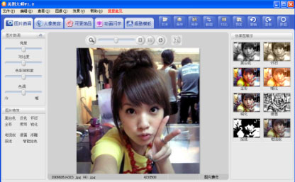 你也想拥有一张如上图所示的效果吗?将这些超炫的图片上传到QQ空间、博客中,或是将自己的聊天头像改为这样的图片,甭提多满足了。其实要实现这样的图片效果不难,关键是找到一款适合的图片处理软件,其中一定要自带一些图片效果素材,这样操作起来就很方便。这方面可以选择的编辑软件不少,本文主要介绍利用“美图大师”这款趣味的图片处理软件来实现所需效果,大家可以从其官方网站下载并安装它。网站地址为:(http://www.meitudashi.com/)。现将基本实现步骤介绍如下: