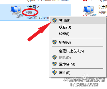 找到我们使用的网络,点击右键禁用,网络就暂时关闭了