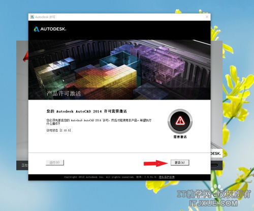 打开cad2014,这时会提醒我们进行激活,我们直接点击激活
