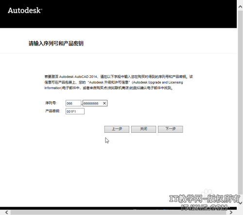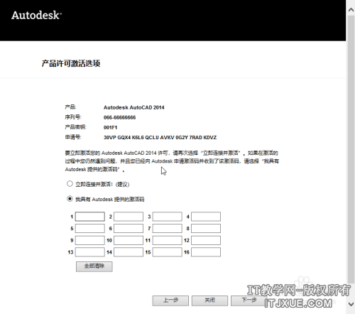 点击下一步,就会出现输入激活码的界面,如果不行重复上一步,尝试换一个序列号,点击我具有autodesk提供的激活码