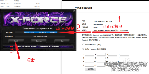 鼠标选择申请号,按ctrl+c键复制到激活软件的request处,按ctrl+v粘贴进去