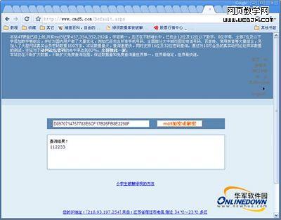 3、我们可以通过MD5在线破解网站:http://www.cmd5.com反查,来获得绿坝软件的真正密码;