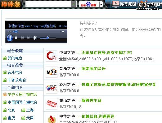 网络电台是一个可以随时在网上收听电台节目的功能,由于“棒棒条”是一个工具条软件,它可以长时间开启。所以利用它听广播既节省资源,又方便快捷。用户可以在上网冲浪和工作的同时,收听自己喜欢的电台节目。目前国内主要的电台基本都能覆盖,并且电台数量在不断增加。