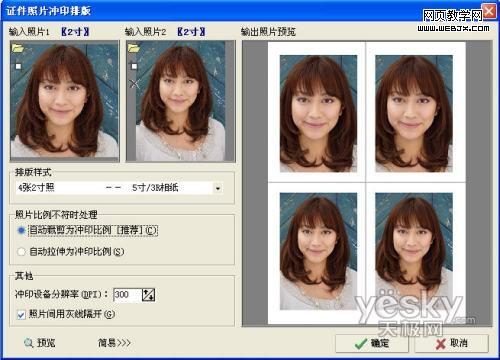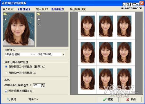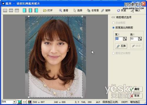 只需点击相应的尺寸,便可以一键搞定多种大小的裁剪。在这里,光影魔术手人性化的提供了包括“证件照、MSN/QQ头像等”多种常用尺寸共选择。不过这里做出来的证件照只是单独的一张,并没有排版。
