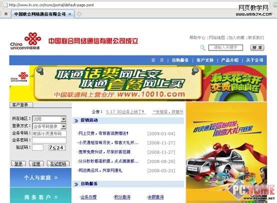 访问联通(新网通)辽宁首页http://www.ln.cnc.cn/,显示如下。