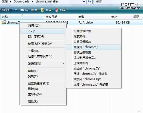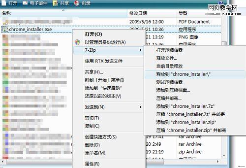 很多人一直因为Chrome只能安装到系统分区(一般都是C盘)而感到很不爽,实际上这个问题完全可以通过制作便携版来解决,那么如何制作便携版Chrome呢?虽然有一 部分人知道,但毕竟是少数,特发此贴讲解一下。实际上,我们每次下载到的Chrome_installer.exe都是一个压缩文件包而已,使用常规的解压软件(比如7-zip、Winrar)等就可以将其解压。我们下面以最新的Dev版2.0.181.1为例进行讲解。