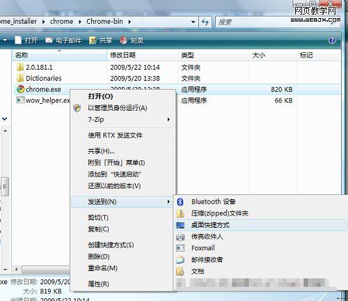 4、上一步操作之后,可以得到Chrome文件夹,在chromeChrome-bin下就可以找到Chrome.exe程序文件了,现在双击这个exe文件,便可以启动Chrome,你也可以发送一个快捷方式到桌面上,至此便携版Chrome制作完成,纯绿色的。如图: