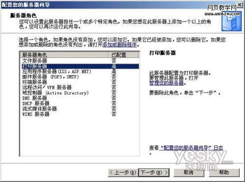 首先确保该电脑安装好Windows Server 2003系统,并能保证正常连接到单位局域网内,随后将打印机连接到该电脑上,打开“管理您的服务器”组件,在“打印机服务器”中单击“添加打印机”(图1),随后按照提示来添加我们需要安装的打印机并安装好打印机的驱动程序。