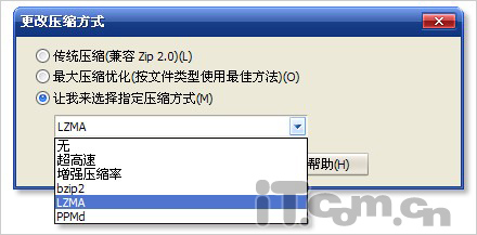 对于压缩软件来说,压缩算法直接决定着压缩比率和压缩用时。为了更好地适应各种应用环境,很多压缩工具都提供了多种压缩算法,供用户选择。而在最新版WinZip 12中,我们便在它的压缩选项中,发现了一项全新的LZMA算法。其实,谈起这个LZMA,大家也许并不陌生,它就是时下非常流行的一款压缩工具 —— 7-Zip的默认算法。至于它的优点嘛,简单来说就是两点,压缩比高、压缩速度快。