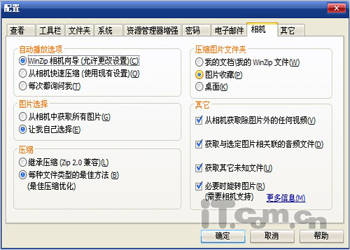 以前,整理数码照片,是件十分麻烦的事。首先,我们需要打开存储卡,将照片下载到本地硬盘。然后,再通过编辑软件,将各种颠倒的照片“扶正”。最后,才能挑选出中意的照片文件,压缩成册。而在最新版WinZip 12中,这样的麻烦,已经被一项全新的“相机导入向导”所取代。在这项功能的帮助下,我们不但可以将相机中的照片,直接通过WinZip打包出来。而且,还能利用选项窗口中的预设选项,实现相片的自动“扶正”(需要相机支持)。当然,在这个过程中,软件也会向我们展示出照片的缩略图,以便我们可以根据喜好,轻松挑选“打包”照片。