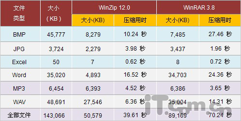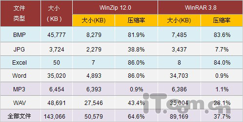 测试结果一目了然,在和WinRAR的对决中,新版WinZip 12事实上已经获得了完胜。尤其在对JPG、Word、WAV等文件的测试中,WinZip都较WinRAR有着数量级上的优势。而软件中那个“优化最佳压缩”(算法),也在实际测试中,展示出了巨大实力。通过对不同类型文件,智能挑选出不同的压缩算法。WinZip便能自动确定出最优的压缩方案,而这,也在很大程度上,帮助软件最终战胜了WinRAR。