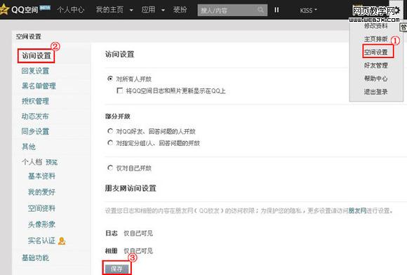 设置QQ空间访问权限日志访问权限和相册访问权限