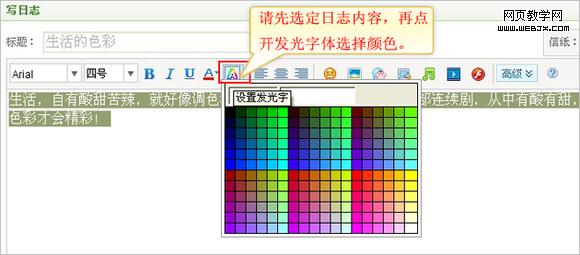 请您先选定日志内容后,点击发光字体的图标识,选择您喜欢的颜色。