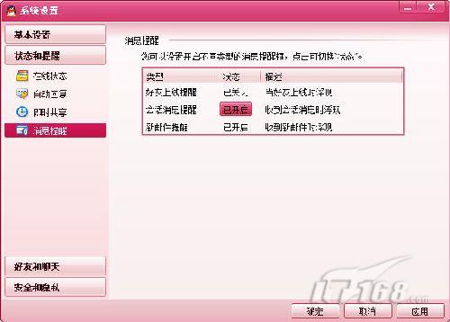 我们点击QQ的开始图标,选择“系统设置-状态和提醒”命令打开“系统设置”窗口。然后,选择“消息提醒”选项,在右侧开启“会话消息提醒”即可(如图1)。