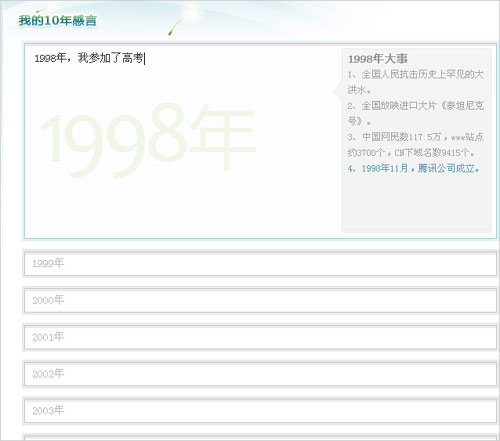 5、写下从1998年至2008年,你自己的10年感言,就立刻可以点亮了。