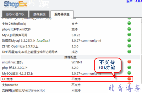暗香点击后台右上角的 关于-服务器信息,然后发现里面有一项配置是不支持的,就是GD功能